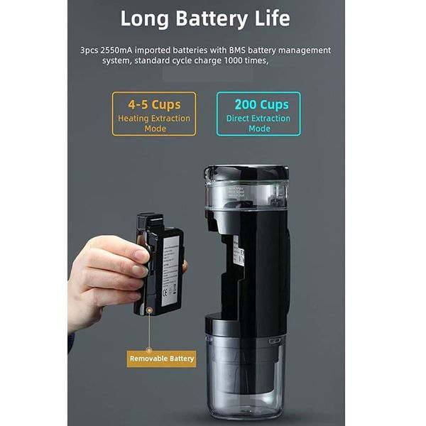 این اسپرسوساز دارای سه باتری مستقل 2550 میلیآمپر است که شارژدهی فوقالعادهای ارائه میدهد.