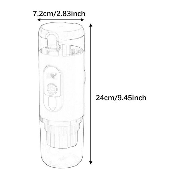 اسپرسوساز سفری با ظرفیت مخزن 60 میلیلیتر، ابعاد 228×75×75 میلیمتر و وزن تنها 740 گرم طراحی شده است تا بدون هیچ دردسری در کیف، چمدان یا کولهپشتی قرار بگیرد.